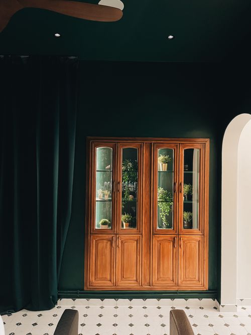 LivingRoom salon smješten je u tradicionalnom zagrebačkom stanu, gdje su originalne arhitektonske značajke poput hrastovog parketa, zaobljenih prijelaza, visokih i prostranih francuskih vrata te ugradbenih ormara sačuvane i pažljivo integrirane u novi dizajn. Prostor salona uravnotežuje vintage senzibilitet s suvremenom funkcionalnošću: svijetli, otvoreni radni prostori za šišanje kontrastiraju tamnijom, intimnijom spa zonom za pranje kose. Rezultat je raspored koji djeluje i kurirano i življeno — poput ulaska u nečiji elegantan, gostoljubiv dnevni boravak.